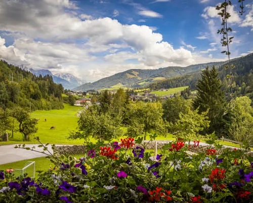 Genießen Sie auf Ihrem privaten Balkon die atemberaubende Aussicht auf die umliegende Berglandschaft und das malerische Tal – der perfekte Ort für entspannte Stunden nach einem ereignisreichen Tag.